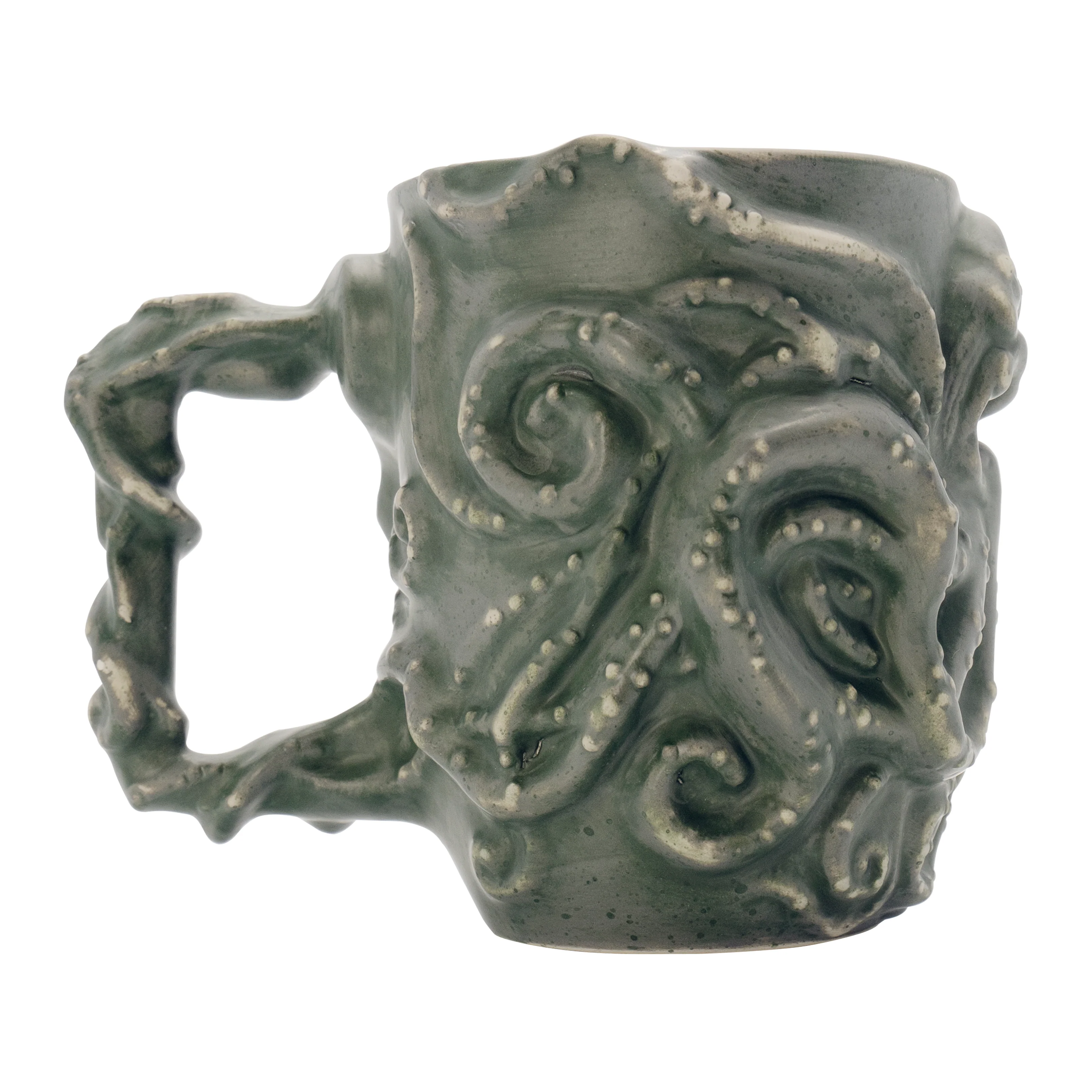 Offer up a libation to a nightmarish entity older than time itself in a vessel cast in his exalted image… Or, you know, just enjoy a nice warm cup of coffee. Ahem, uh black coffee of course. Blacker than the fathomless depths of the abyss from whence The Great Old One lurched into being!!! Seriously though, it's a really cool coffee mug and it's got a 3D design modeled after Cthulhu himself, so all of your friends and co-workers are gonna be, like, super jealous. Grab one for yourself today and tremble in fear before his awesome visage.